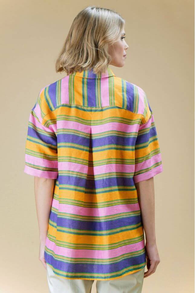 Свободная рубашка oversize из 100% льна в яркую полоску от Матильды Кастелло Бранко