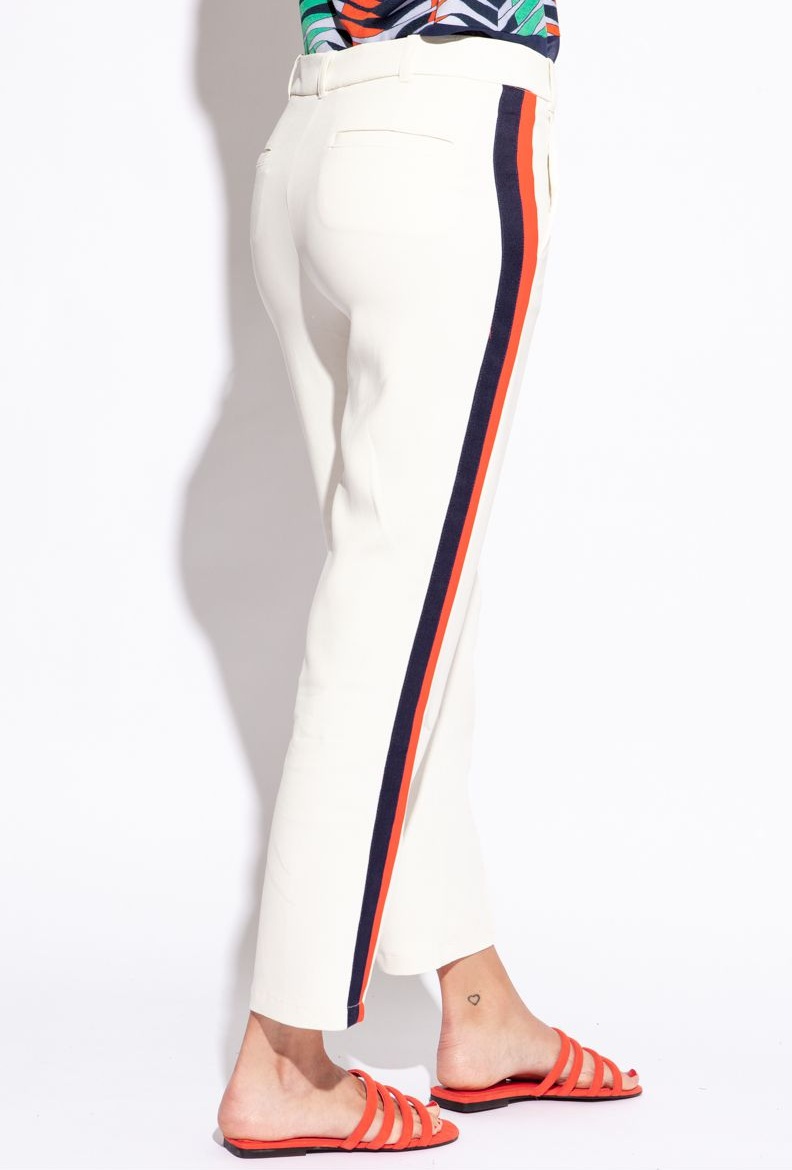 Дизайнерские брюки с двойными лампасами в длине 7/8 на высокой посадке.