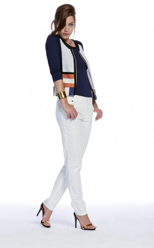 Джинсы молочного цвета с фактурой шитья, внутренняя подкладка шортами.