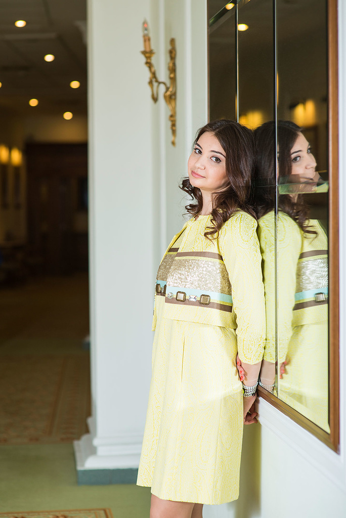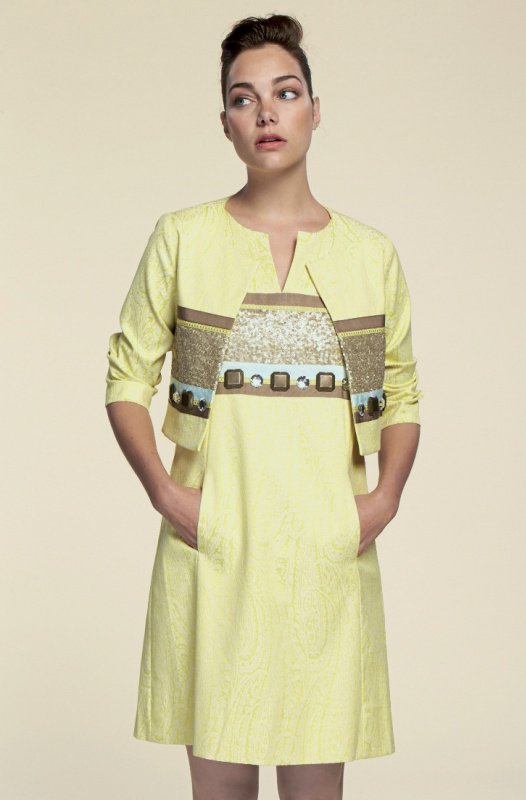 Лимонное элегантное платье без рукавов с планкой, расшитой пайетками