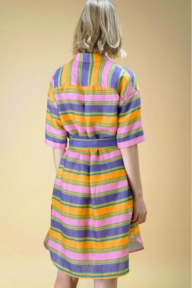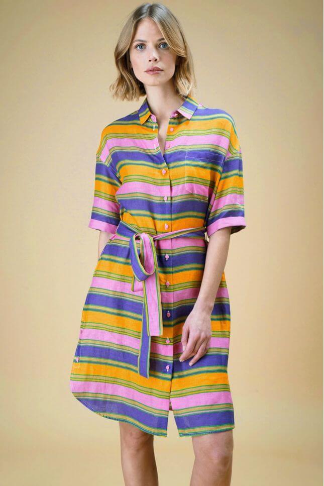 Комфортное и легкое платье-пальто из 100% льна в яркую полоску от Матильды Кастелло Бранко