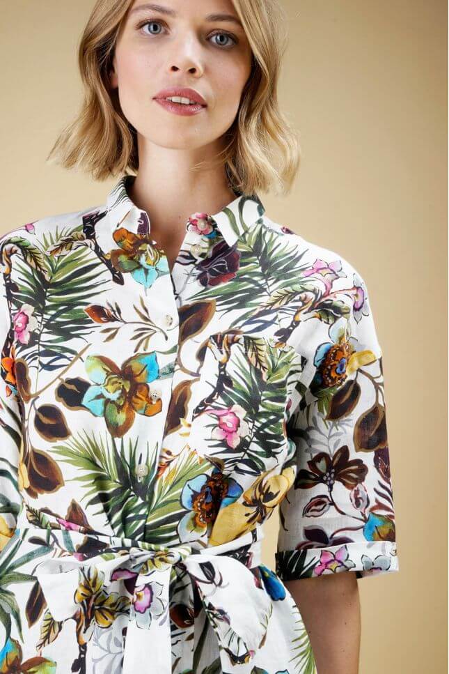 Комфортное и легкое платье-пальто из 100% льна в коллекционном растительном принте от Матильды Кастелло Бранко