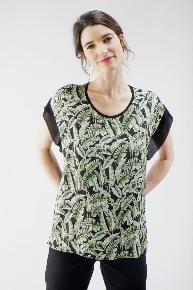 Топ oversize с трикотажной спиной и двуслойный впереди в растительном принте от французского дизайнера Матильды Кастелло Бранко