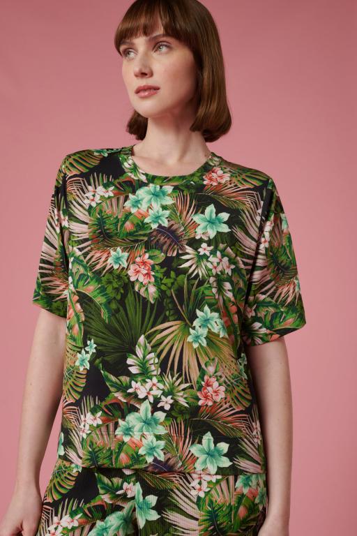 Дизайнерский топ с рукавчиками в принте "джунгли"