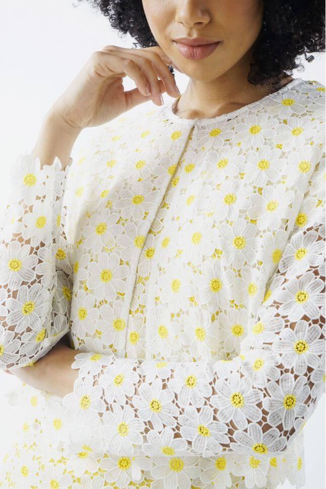Укороченный жакет из шитья "ромашками", прямой силуэт, мягкая фактура